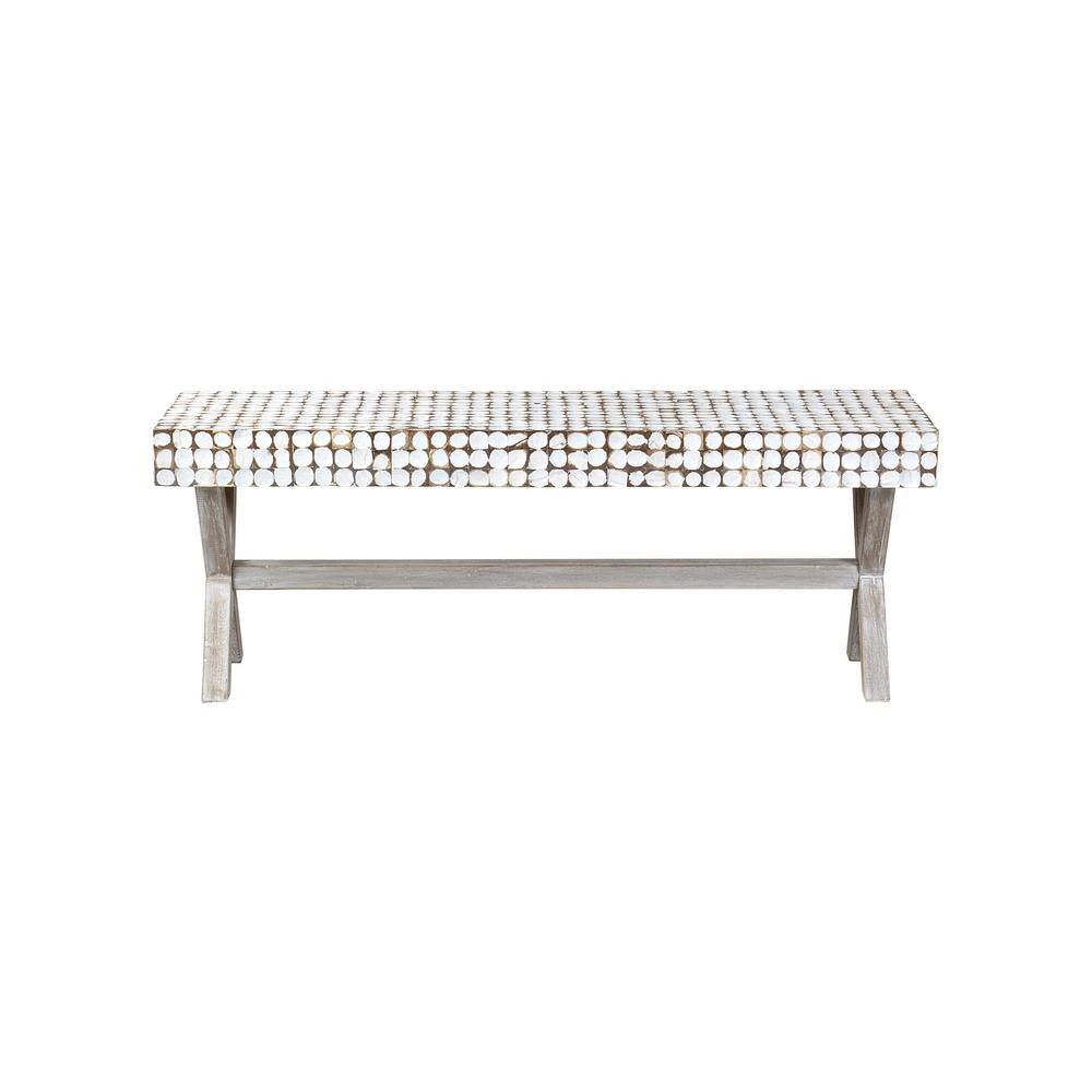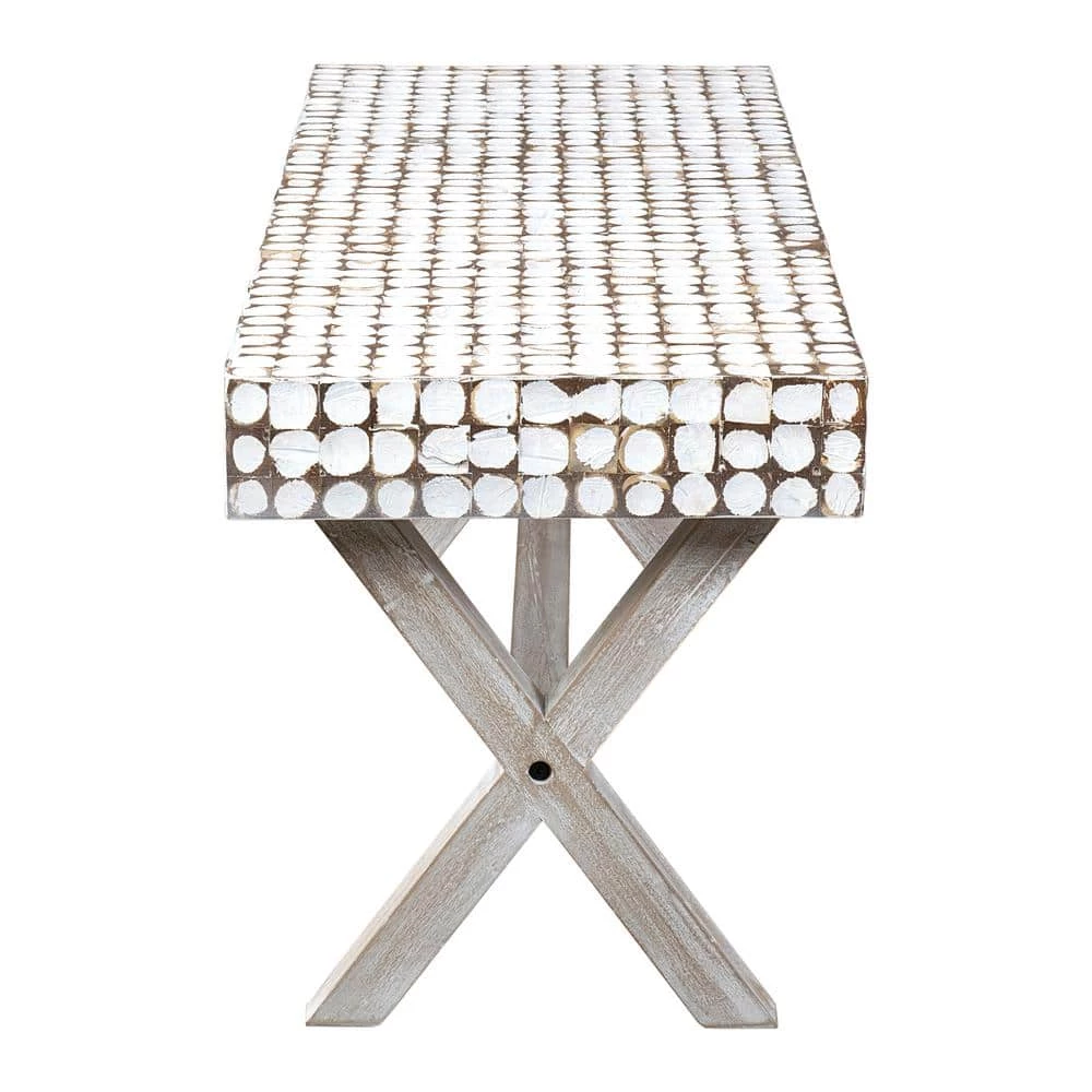 Company is coming, extra seating required pronto. The East At Main’s Coco bench to the rescue. The Coco bench is hand-crafted by talented Indonesian artists. The seat is a mosaic of coconut shells, finished with a white patina and the teak base is finished with a white wash.