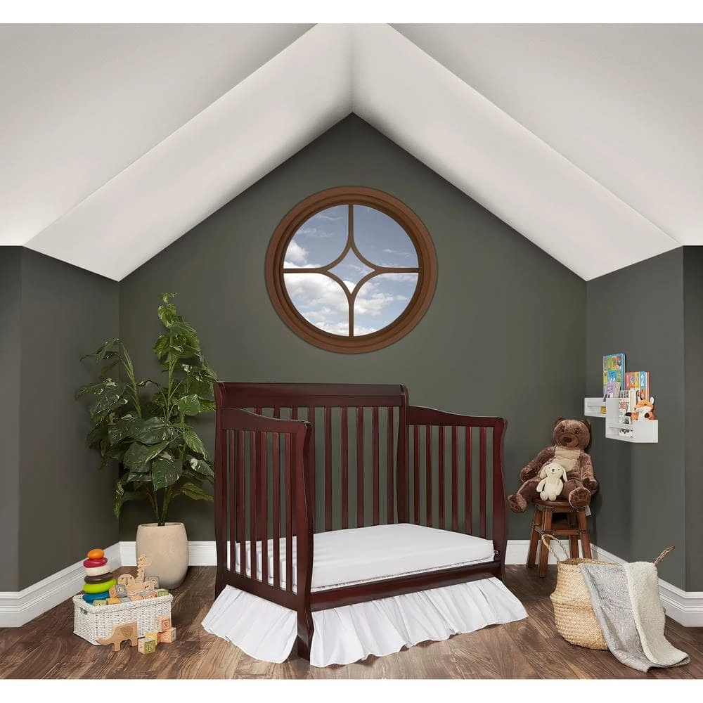 The Dream on Me Aden Convertible 4-in-1 Mini crib is a beautifully designed crib that gracefully matures gracefully with your child from infancy, through childhood to adulthood. With its robust good looks and solid frame this crib features a stationary (non-drop side) rail design which provides the utmost in product safety. For ease in reaching your baby, it sits low to the floor and features the convenience of a 3 position, adjustable mattress support system. Stylish and sturdy, this lovely piece of nursery furniture grows with your child transitioning easily into a toddler daybed, and twin-size bed (twin size bed frame and twin mattress not included). Available in a variety of stylish finish, coordinates with the Dream on Me Marcus Changing Table and Dresser. All tools for assembly included. Accommodates a Dream on Me portable crib mattress measuring 38 in. x 24 in. sold separately. All our cribs are JPMA certified to meet/exceed CPSC/ASTM safety standards. Our products are tested by 3rd party labs for lead/other toxic elements to meet/exceed CPSC/ASTM safety standard.