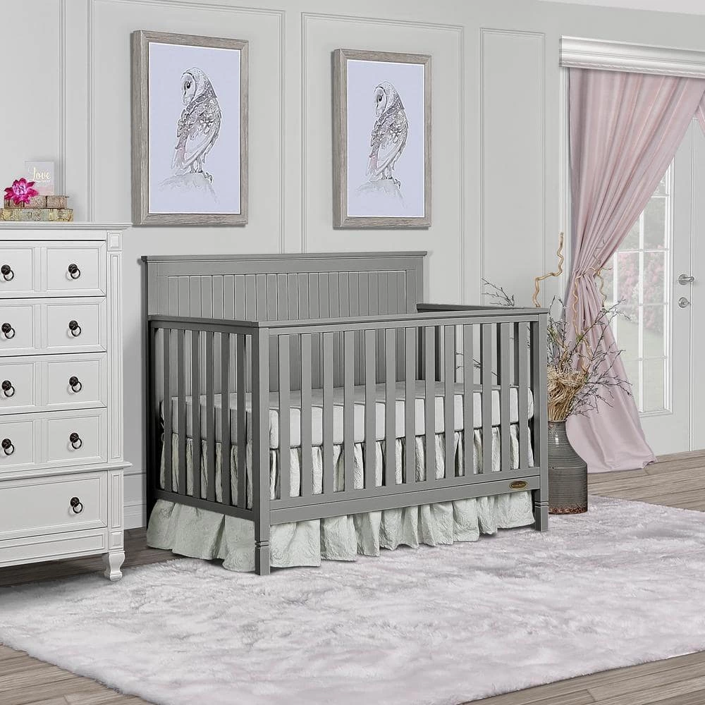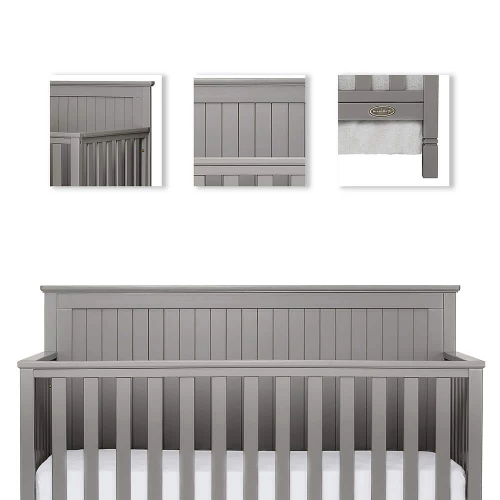 The Alexa 5-in-1 convertible crib adds a touch of uptown charm to any nursery, the lean modern design adds a contemporary style which fit is any decor from you baby nursery to your growing child’s bedroom. Dream on Me Alexa crib features a solid headboard accenting vertical routing lines, which gives a bold finish to this crib while the straight frame gives a sense of modern chic. As your child grows the mattress support can be adjusted to one of three height positions or reconfigure the crib into a toddler bed, daybed and full sized bed (conversion toddler rail and bed rails sold separately) complete with a head and foot-board according to your child’s needs. The Alexa crib construction creates a long lasting design for the truly modern city chic family.