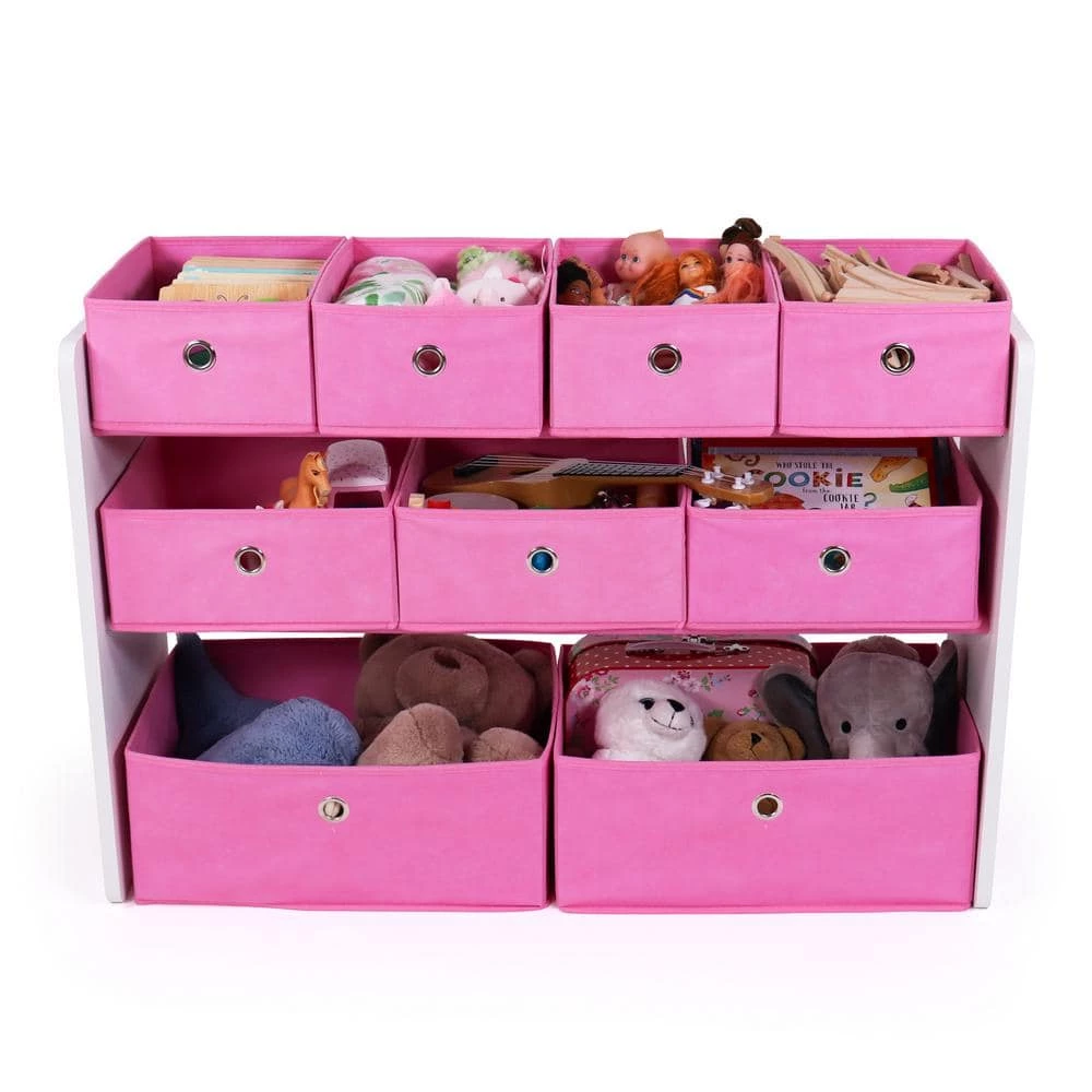 - 9 removable and collapsible fabric toy storage bins for playtime and easy clean up.