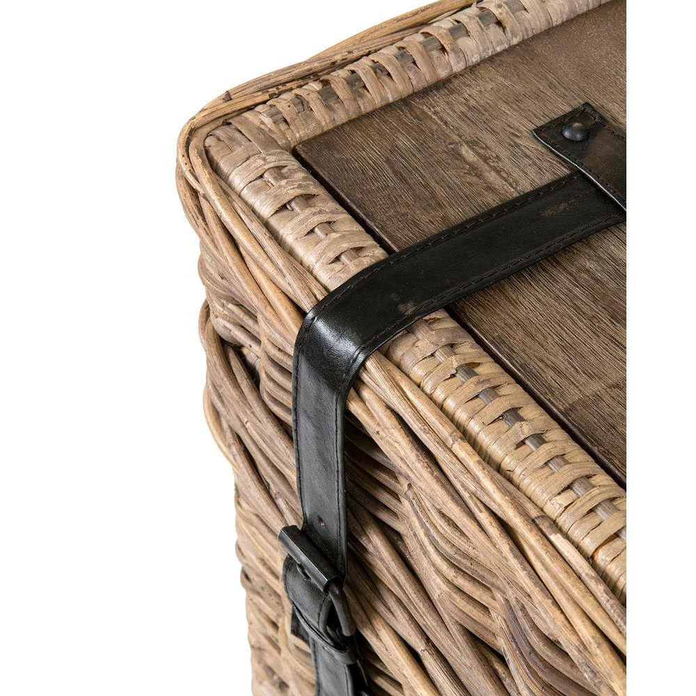 Handwoven from rattan, the Atchison accent table is the best of both worlds for tables and storage. Featuring two leather straps that neatly keep the lid closed and a wood top to allow easier placement of items, this piece is a practical choice for anyone who needs their furniture to work a little harder. Open the lid to reveal ample storage space for out of season blankets and pillows.
