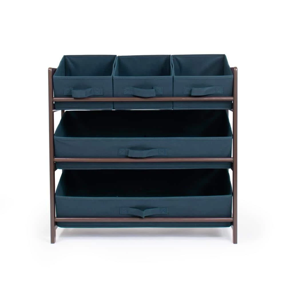 From playtime messes to closet organization, reimagine functional home storage with the Humble Crew Compact Fabric Bin Organizer. This space-saving organizer includes 5 storage bins to stow your children’s toys or your favorite accessories, games and more in easy-to-see, easy-to-access collapsible fabric storage bins. 3 standard size and 2 large size storage bins are easy to remove, replace, and reposition along the 3-tiered shelves-sized just right within the toy organizer for toddlers and preschool-aged children. It makes a great garment storage solution or toy box storage alternative, helping keep your little one’s room clean and organized while at the same time teaching sorting and cognitive skills. This unit will even grow with your child, making space to sort shoes, smaller sports equipment, books and more as they age. The stylish ladder-style frame and understated colorway makes this the perfect organizational solution sure to complement existing furniture in the bedroom, nursery, playroom, living room, or entryway. Made with a sturdy engineered wood construction shelving frame and durable polyester bins, each level can hold up to 30 lbs. Some assembly is required and all hardware is included. Assembled dimensions: 25 in. x 11 in. x 24 in. Small bins: 8 in. x 10 in. x 5 in. Large bins: 24 in. x 10 in. x 5 in.