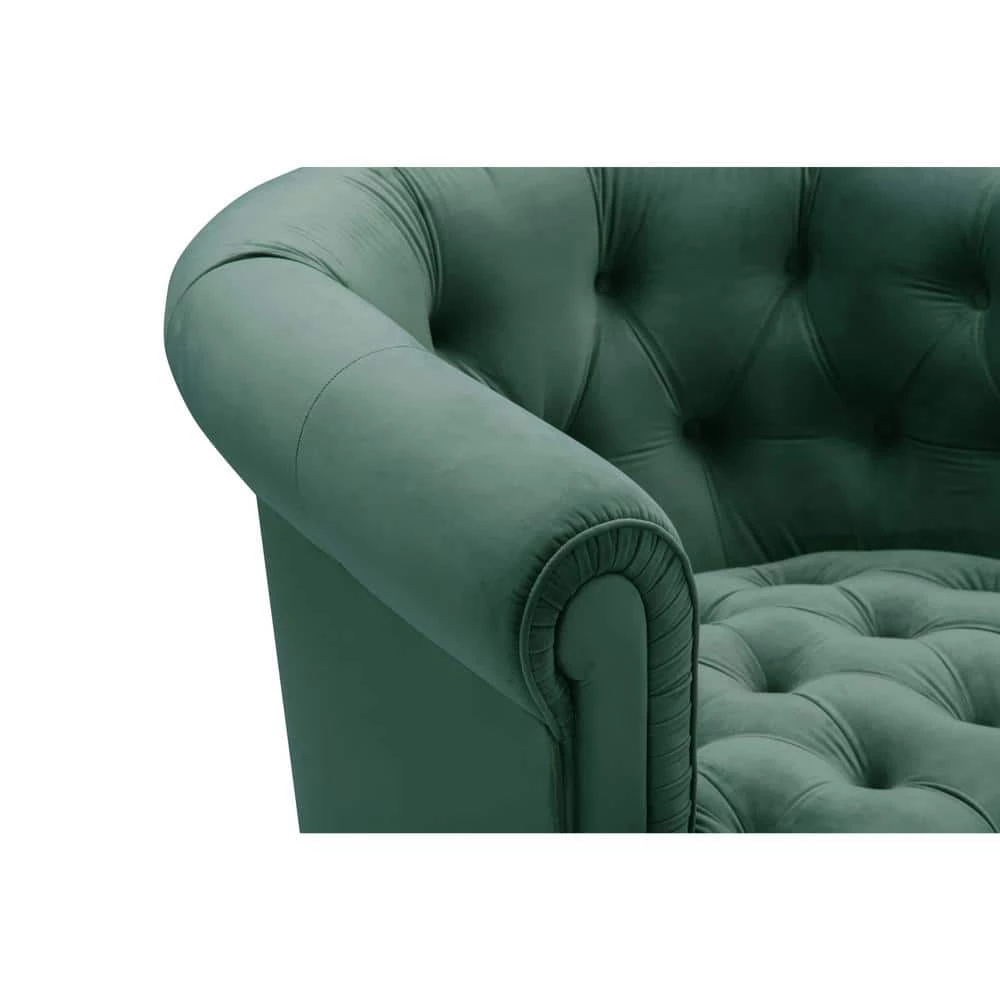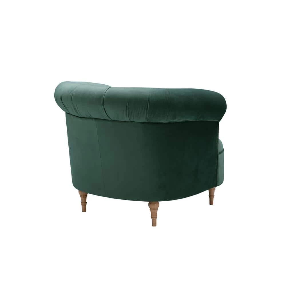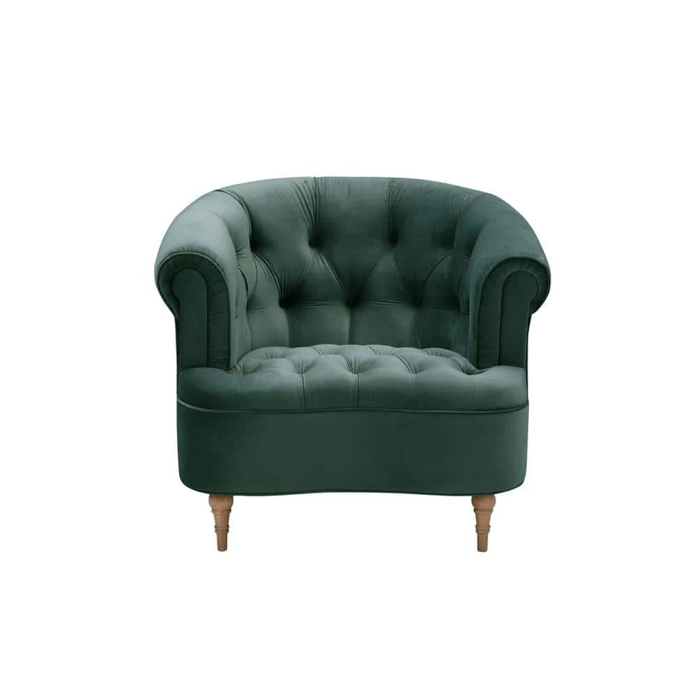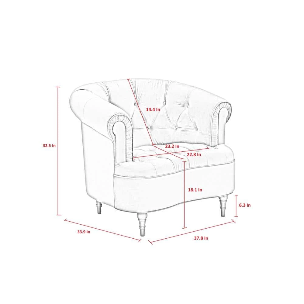 Create a stunning living room with this comfortable and elegant accent chair. Featuring buttery soft velvet fabric, web suspension seat construction and solid wood frame, this sleek club chair will quickly become your new favorite spot to rest and unwind. With rolled arms, barrel button tufted back design it is ideal for a stylish addition to your home. This traditional piece has a clean style, complimenting all ensembles either in your living room or the entryway.