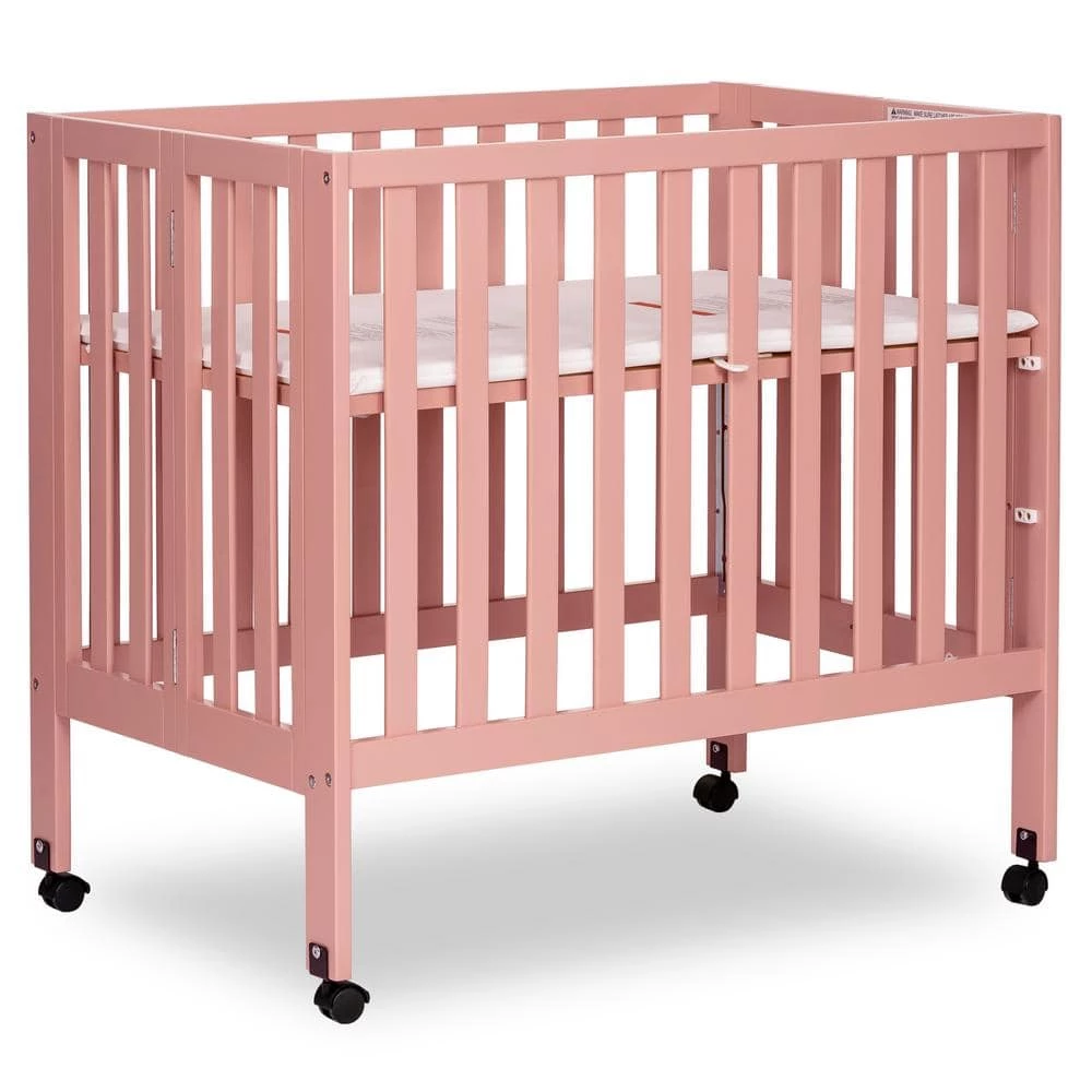 - Product specs: dimensions: crib includes casters for easy mobility; folds flat for easy travel and storage; the included mattress (size: 37.5 in. L x 23.25 in. D x 1.5 in.) stores right in the crib when folded