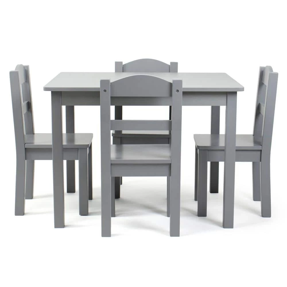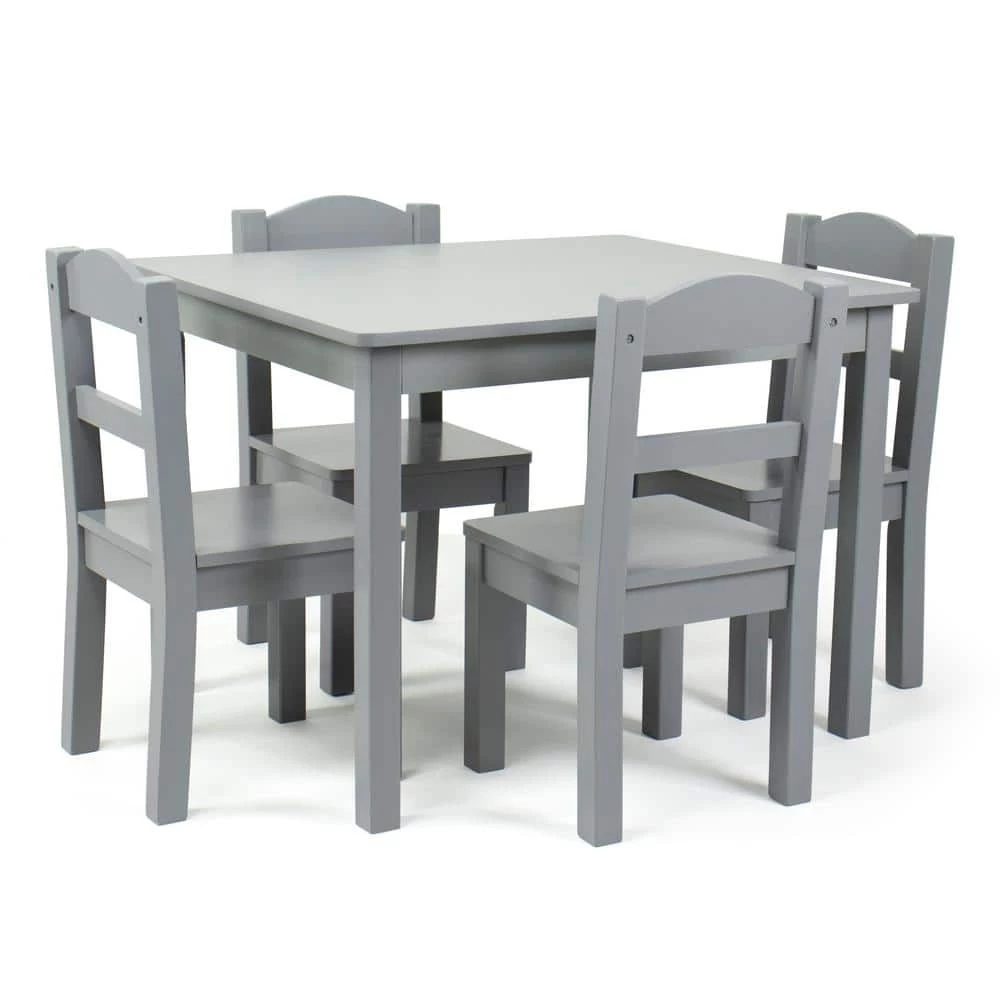 Sized just right for growing kids, the Humble Crew Kids Table and Chair set will host tons of coloring and art projects, snack times and creative play over the years. Modern kids furniture set includes a grey square kids table and four grey chairs that will provide years of creative fun. Durable sturdy engineered wood construction. Easy to assemble. Table and chairs are designed specifically for your little one and is ideal for children aged 3 and up. Product dimensions: Table – . Chairs – 10 in. x 10 in. x 22 in. H. Seat height – 10 in.