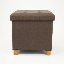 Brown Collapsible Cube Storage Ottoman Foot Stool with Tray by Humble Crew