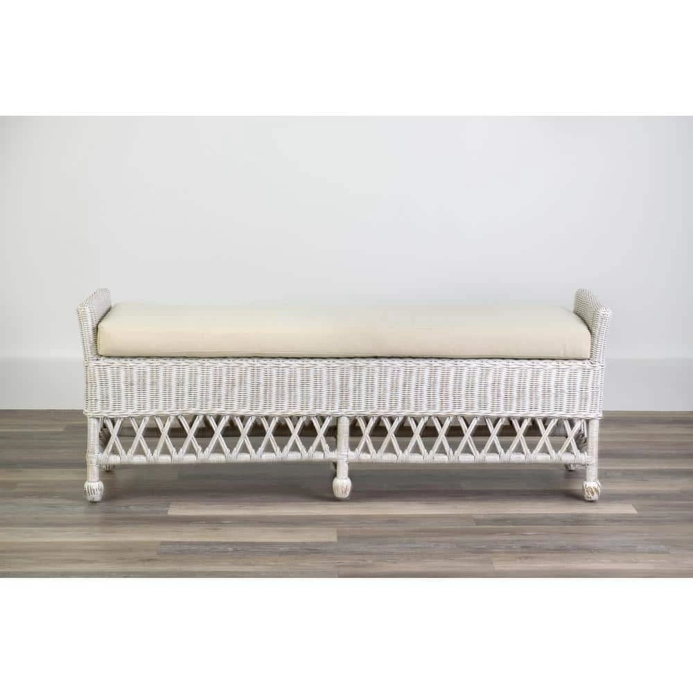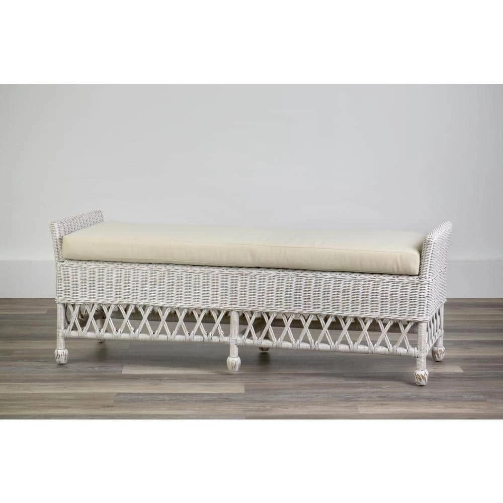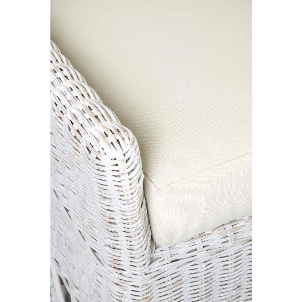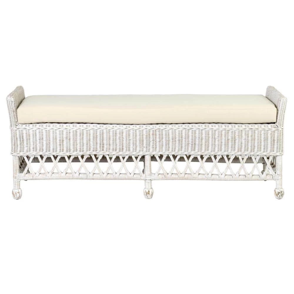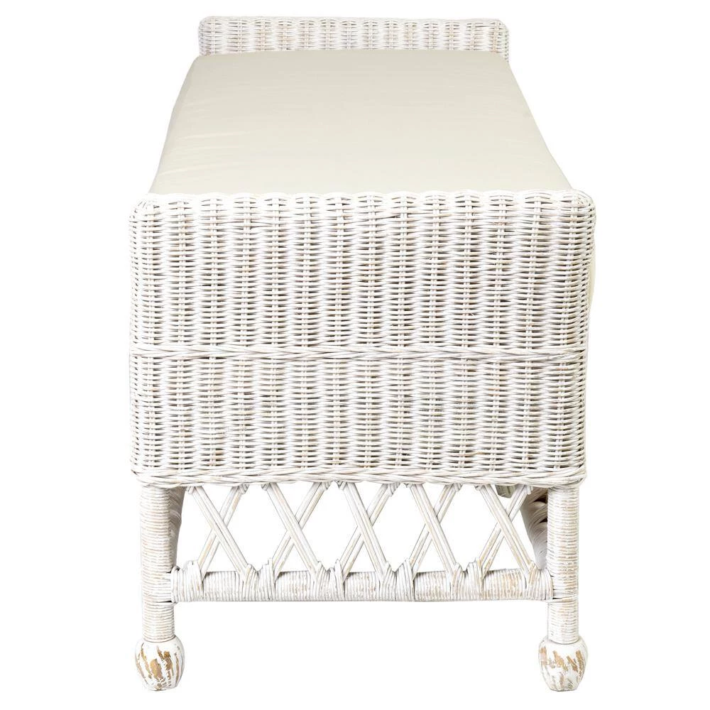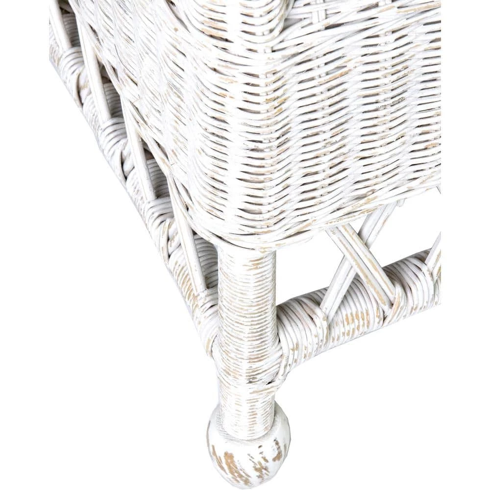 This Wicker Bench incorporates intricate details with comfort to make for the perfect chair! They have handcrafted this chair from Rattan, known for its lightweight feel and durability, this could be used for indoor or outdoor living. They have washed it over with rustic white for some extra color detailing and accents. This cozy wicker style chair is sight for sore eyes.