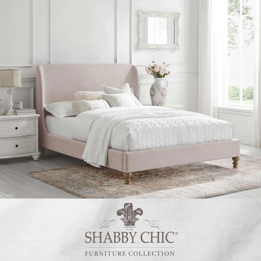This classic Shabby Chic bed is ideal for any decor with its low profile yet astonishing design. Bun shape round tapered legs in natural finish bring retro touch to this magnificent piece of furniture. The simple design and clean lines make this bed perfect for a modern and contemporary aesthetics as well. It features flat headboard, linen upholstery, wingback design, frame constructed of solid and manufactured wood with slats and exposed feet. Turn your bedroom into a luxury suite with this beautiful, low profile platform bed. Our linen upholstered piece of furniture will give your room a soothing look that makes it easier to relax and fall asleep.