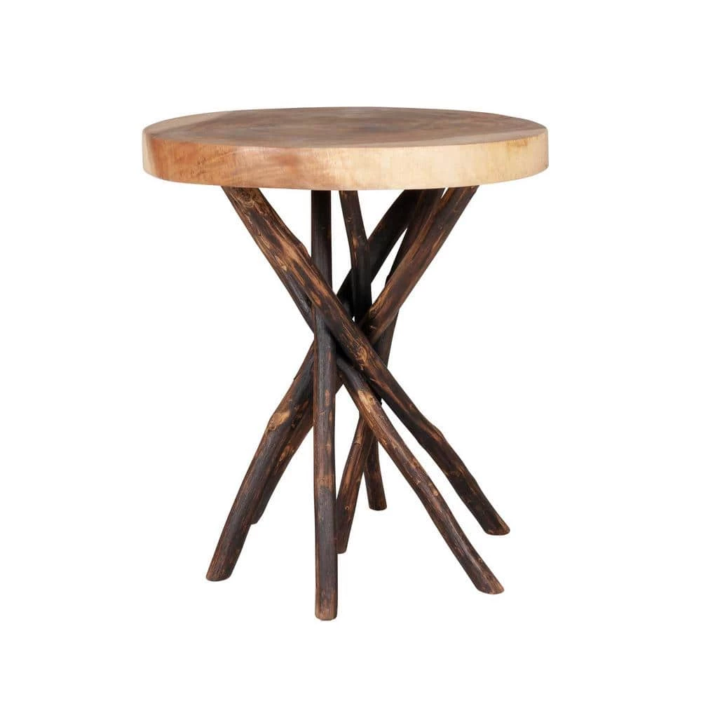 Bring the originality of mother nature into your home with this eye-catching end table! Crafted from reclaimed teak branches with a cross cut slab across the top, each piece is entirely unique. This whimsical design brings evocative charm to your living space! Overflowing with natural beauty, it makes the perfect perch for books of art and vases brimming with blooming buds. Variations due to natural materials and processes mean each piece is as unique as your style. Pair with colorful throw pillows and a comfy couch for a living room ready and waiting to entertain friends and family.