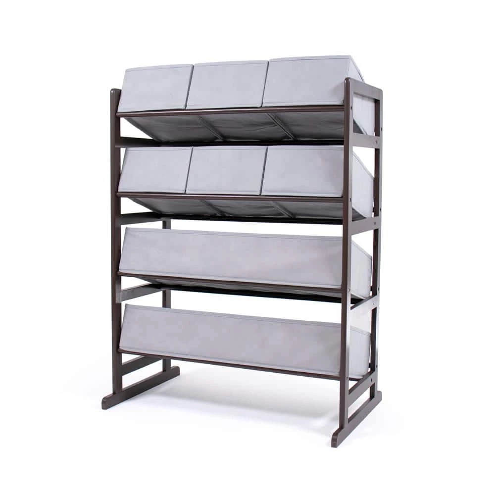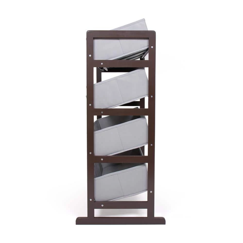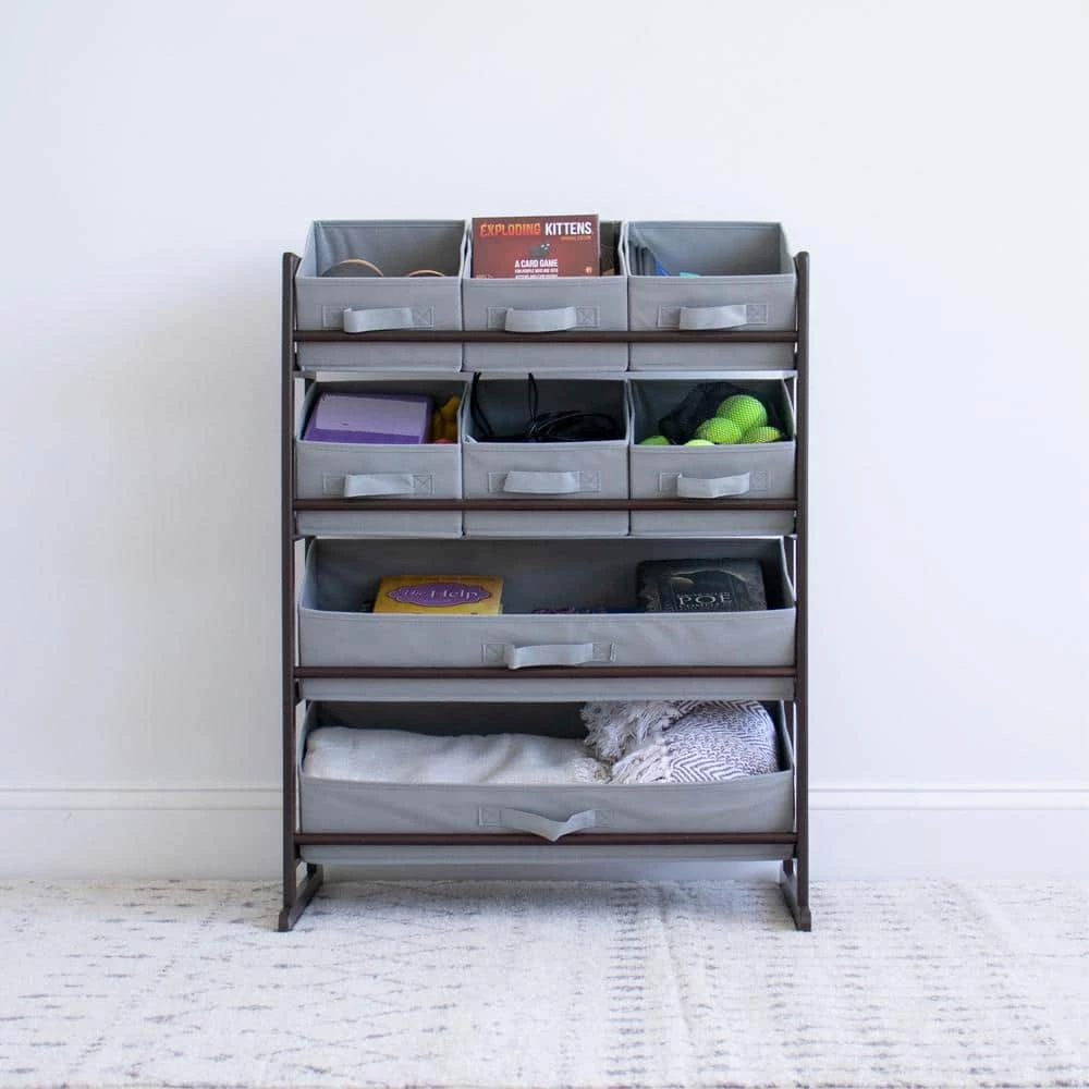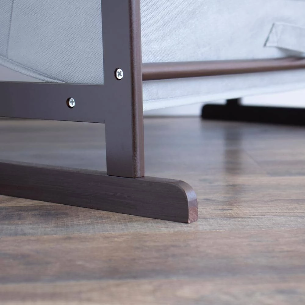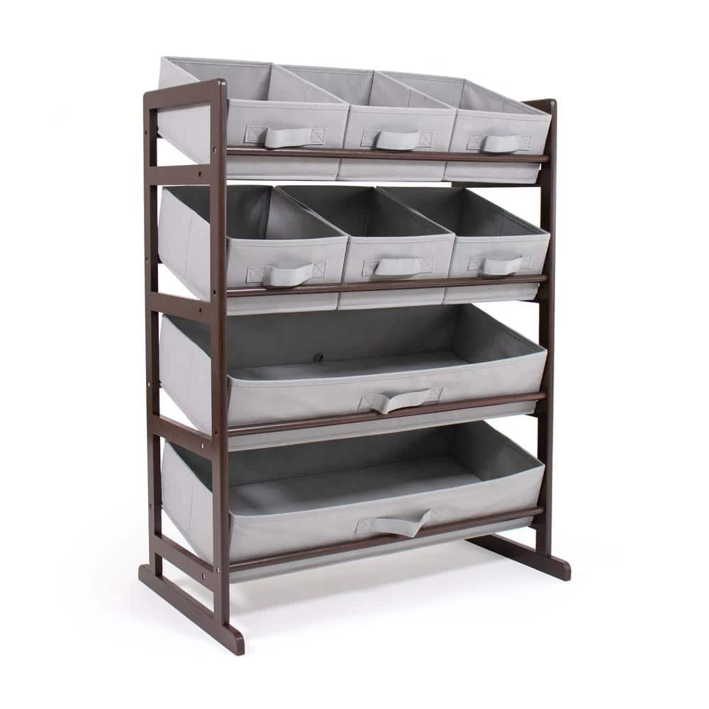 From playtime messes to closet organization, reimagine functional home storage with the Humble Crew Standard Fabric Bin Organizer. This space-saving organizer includes 8 storage bins to stow your children’s toys or your favorite accessories, games and more in easy-to-see, easy-to-access collapsible fabric storage bins. 6 standard size and 2 large size storage bins are easy to remove, replace, and reposition along the 4-tiered shelves-sized just right within the toy organizer for toddlers and preschool-aged children. It makes a great garment storage solution or toy box storage alternative, helping keep your little one’s room clean and organized while at the same time teaching sorting and cognitive skills. This unit will even grow with your child, making space to sort shoes, smaller sports equipment, books and more as they age. The stylish ladder-style frame and understated colorway makes this the perfect organizational solution sure to complement existing furniture in the bedroom, nursery, playroom, living room, or entryway. Made with a sturdy engineered wood construction shelving frame and durable polyester bins, each level can hold up to 30 lbs. Some assembly is required and all hardware is included. Assembled dimensions: 25 in. x 11 in. x 33 in. Small bins: 8 in. x 10 in. x 5 in. Large bins: 24 in. x 10 in. x 5 in.