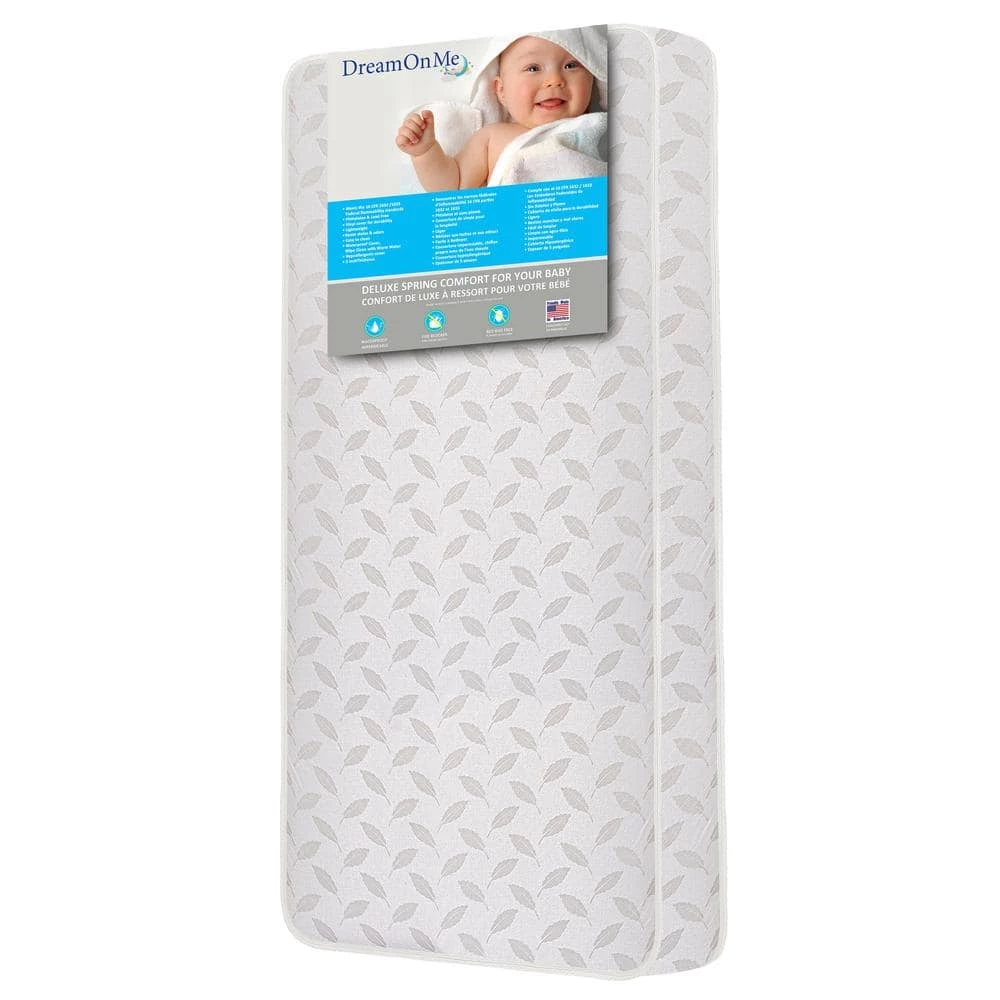 Dream On Me, 132 Premium Coil Inner Spring Crib and Toddler Standard Mattress is designed for comfort and support. Feel confident knowing this mattress is phthalate and lead free and constructed with quality materials and workmanship. The mattress features a protective polyurethane foam wrap on each side that provides a plush sleeping surface in addition to a hypo-allergenic foam Insulating layers for lasting comfort and durability. This mattress has 132 interwoven steel coils and all-around heavy duty steel perimeter support system. The waterproof cover, has a Lock-Stitch venting system and wipes clean with mild soap and water. Complies with the Federal Standard Flammability Standard 16 CFR 1633.