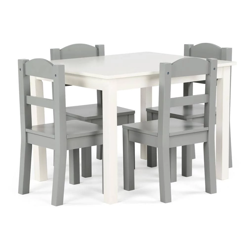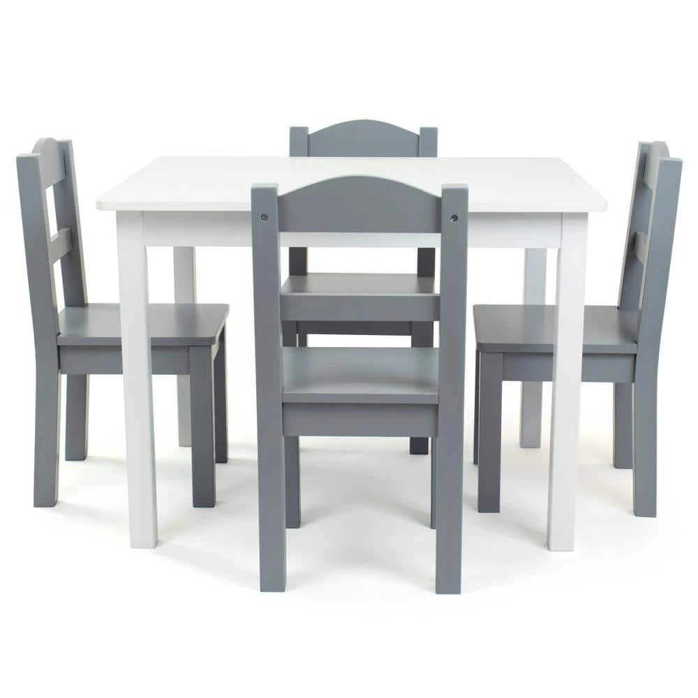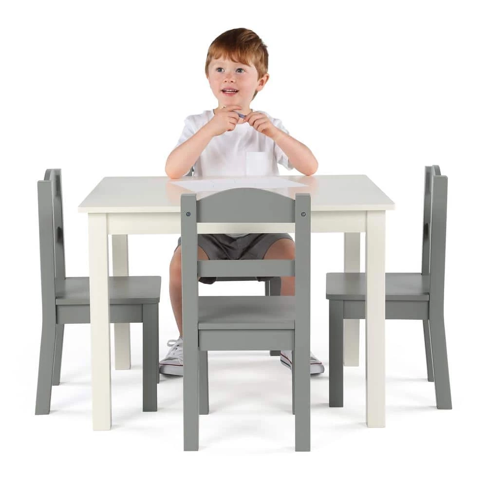 Perfectly sized to meet your growing child’s needs, the Humble Crew 5-Piece Kids Wood Table and 4 Chair Set is sturdy, stylish and simple to clean. This set can be used as a homework study desk, an arts and crafts activity center, or a board game table. It is also a great homeschooling solution for young students doing online school from home. The height of this furniture is just right for toddlers and preschool-aged children; giving your little one a table and chair set at their size gives them a sense of control and helps them learn independence. From snack time to playtime this set will quickly become your little one’s very own favorite spot in the house to draw and color, read, do puzzles, host tea parties, play cars and trucks, and more. The set includes a rectangular table and four chairs in a stylish colorway sure to complement your home’s existing furniture whether it be in your toddler’s bedroom, playroom or the living room. This furniture set is easy to assemble with all hardware included. The sturdy table and chairs feature solid wood legs for additional support and long-lasting durability, ideal for boys and girls aged 3-8 years.