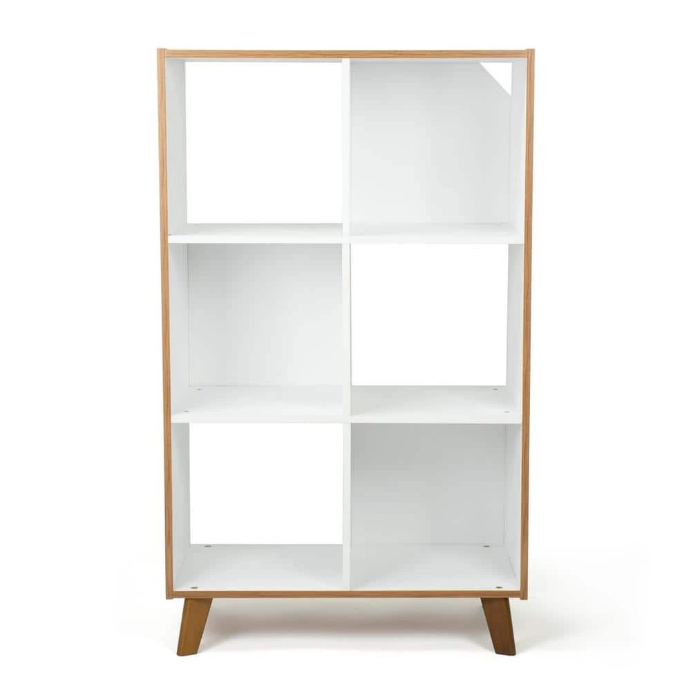 Help your little ones organize their books, toys and more all on their own with Humble Crew’s Morgan 6 Cube Toy Storage Mid-Century Organizer, Wood/White. At only 40 in. high, this shelved storage unit is the perfect height to teach kids a bit of independence and organizational skills at a young age. Easily organize books, toys, blankets or arts and crafts supplies, or display decorations, pictures, stuffed animals and more. Open and accessible storage makes it a breeze for kids to retrieve and replace their favorite items. This fixed shelf bookcase offers spacious and stylish storage for kid’s rooms, playrooms, living rooms, dens, offices and more. Cherry wood finished side panels and tapered legs pair beautifully with the white interior shelving for a look that easily complements existing furniture in any room. The colorway also perfectly matches any of Humble Crew’s Morgan collection for a cohesive aesthetic. This 6-cubby organizer is a great accent piece that is just as functional as it is stylish, ideal even for small space living or college dorms. Easy assembly and durable construction mean this storage organizer truly makes clean up and organization simple for you and your little one alike, Product Sizing- 24 in. W x 12 in. D x 40 in. H.